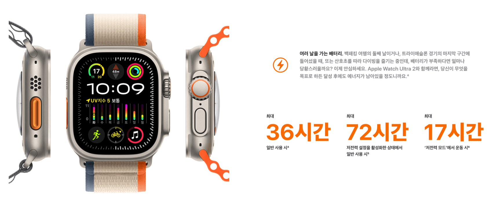 | 애플워치 울트라 1 | 애플워치 울트라 2 | |