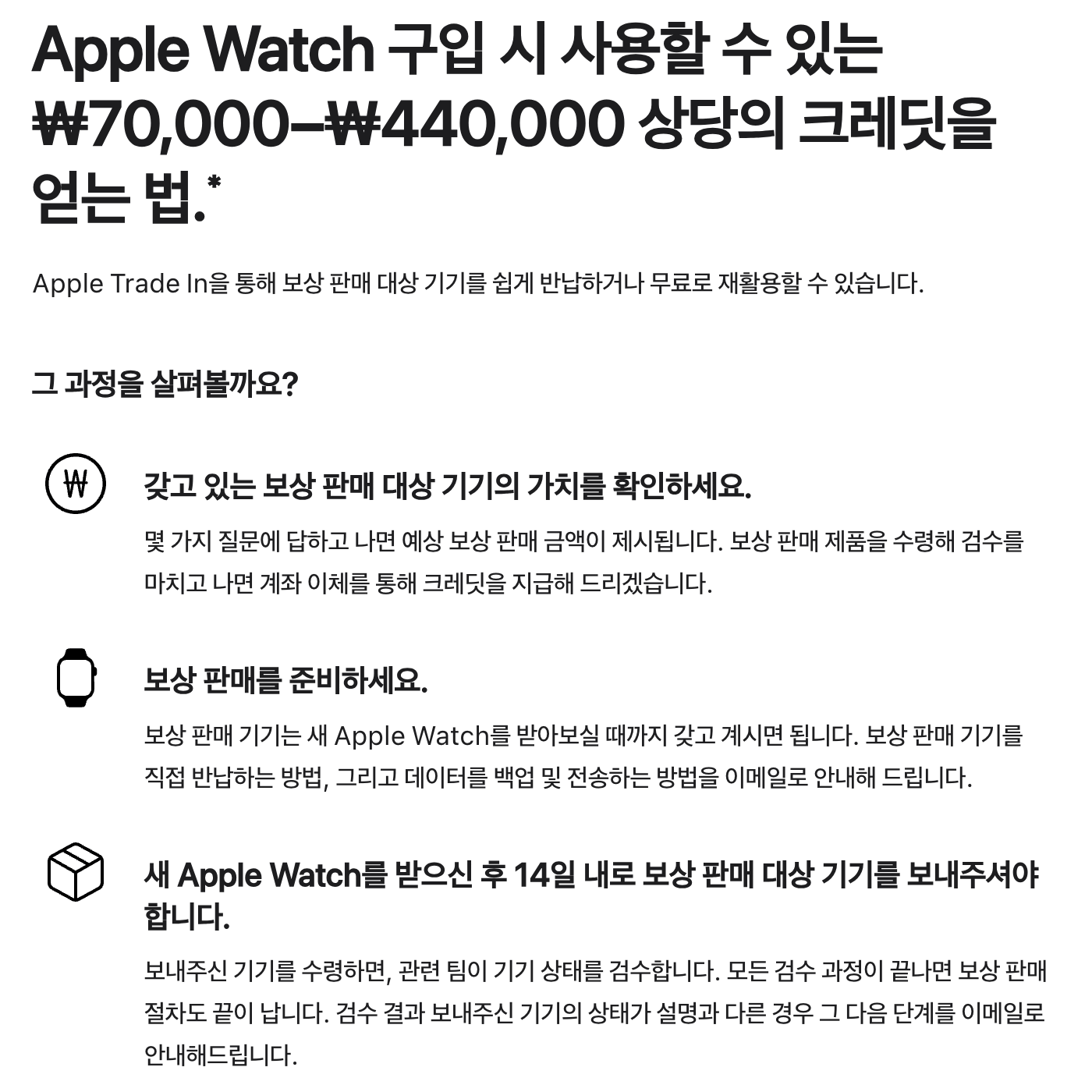 ✔︎ 애플에서 제시하는 워치 보상판매 절차 및 구매 전 수행작업 가이드