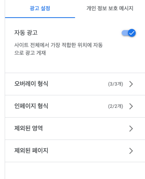 메인 블로그의 광고송출 설정과 똑같이 적용한 후 미리 보기로 확인하시면 원래대로 광고가 송출되고 있는 것이 보이실 것입니다. 적용되는 데에는 대략 1시간 정도 소요되니 크롬 시크릿 모드로 확인해 보시길 바랍니다.