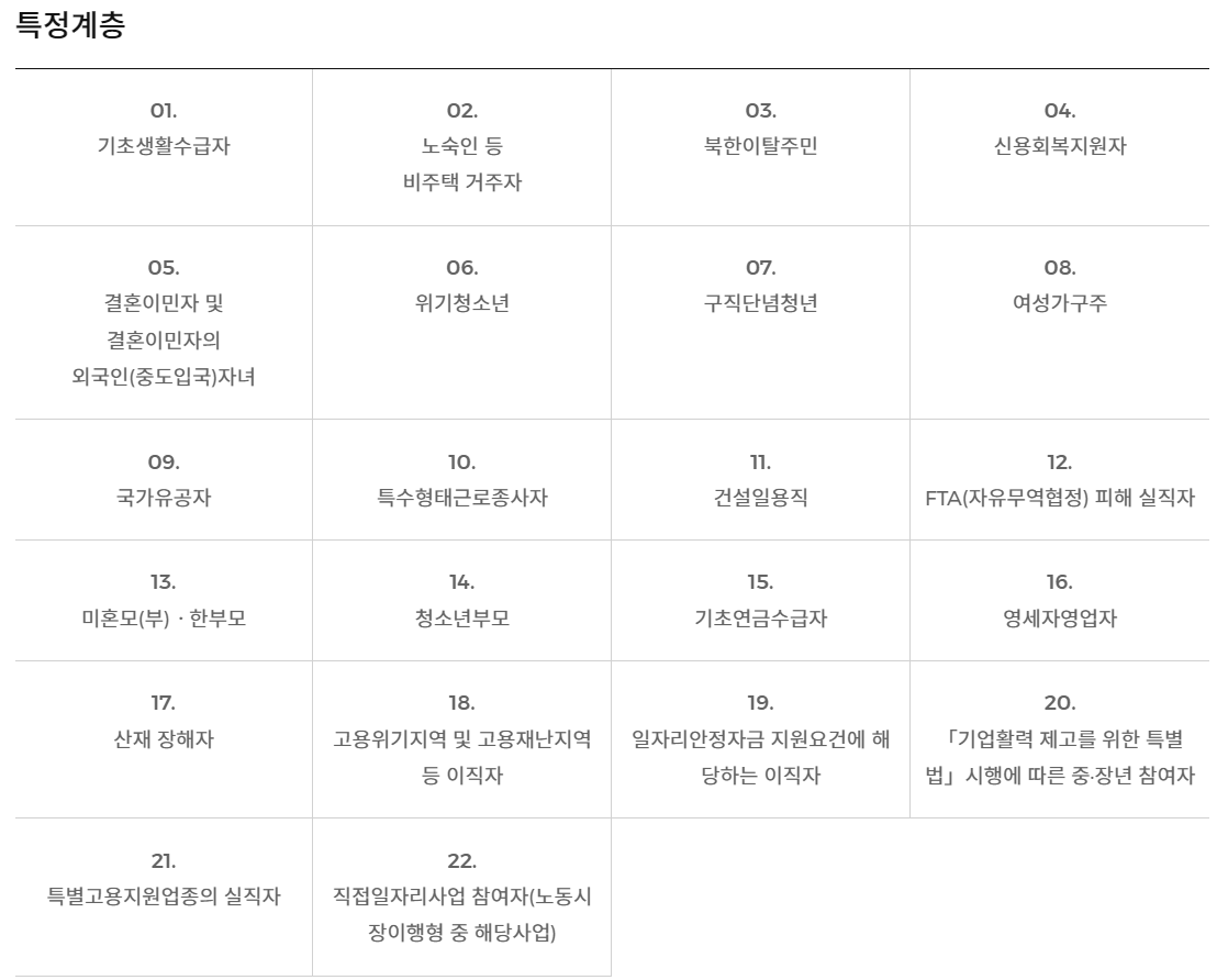 · 정부 재정지원 직접일자리에 참여하고 있거나 참여 종료 후 6개월이 지나지 않은 사람. 단 일부사업*의 경우 참여 종료